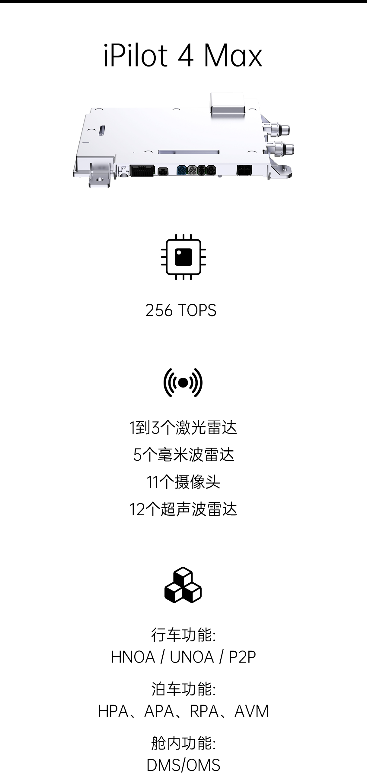 基于自研算法与多传感器融合打造的全栈式智能驾驶量产解决方案,支持HNOA、UNOA、HAVP及APA等多种智能驾驶系统功能,覆盖高速/城市快速路、城区、泊车等应用场景,可根据整车智能化需求灵活开发,保障规模化量产、高质量交付。通过全方位科技赋能,让智能汽车驾驶体验更舒适、更安全。